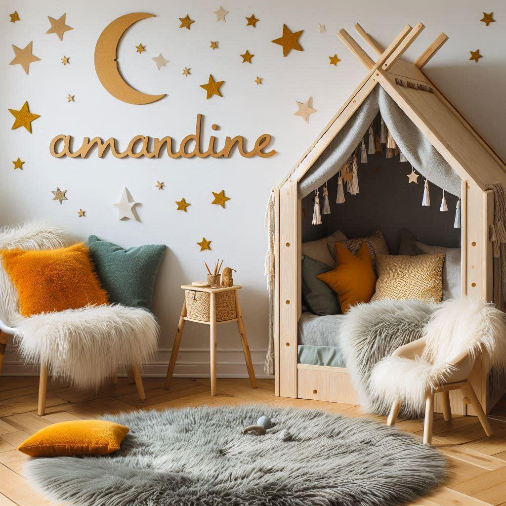 Découvrez nos plus belles idées de décoration de chambre pour petite fille, avec le prénom Amandine et des ambiances douces inspirées de la forêt, des faons, des contes et de l'univers Montessori.