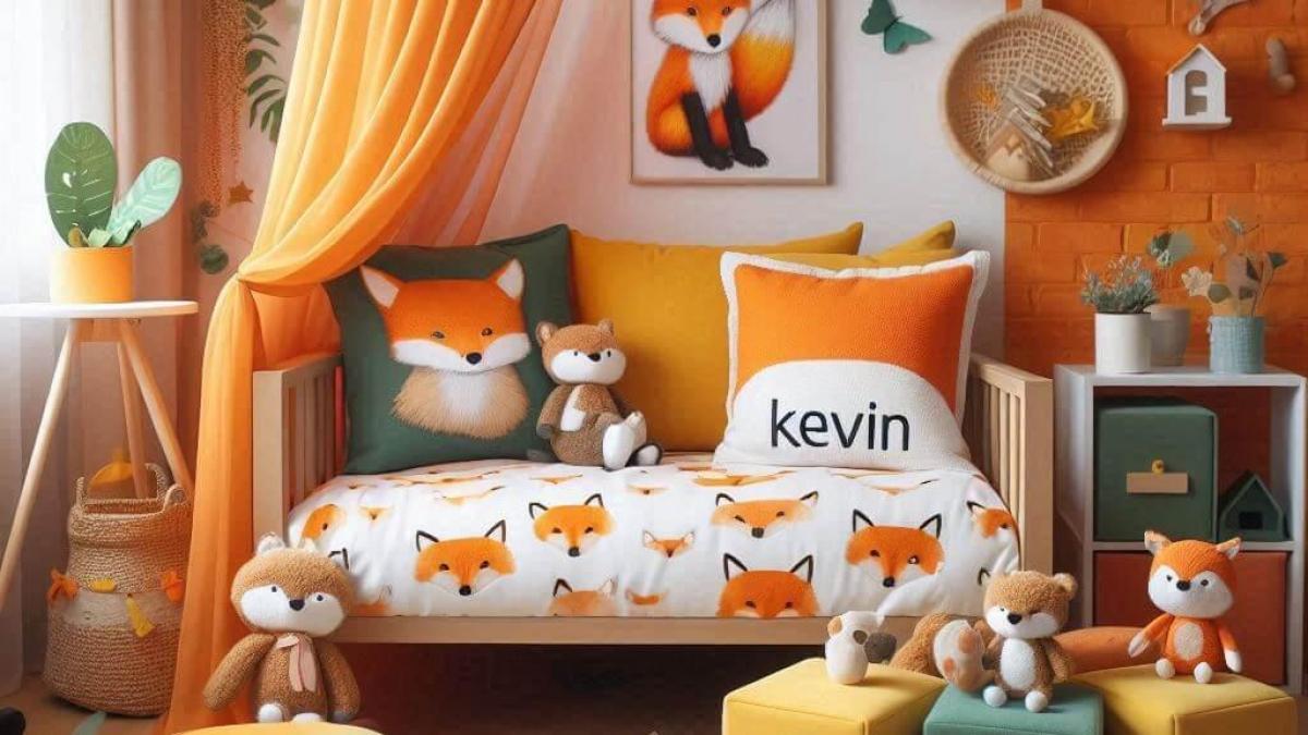 Découvrez l'origine, la signification et le caractère du prénom Kevin. Explorez des idées déco uniques pour une chambre d'enfant sur le thème renard, avec des touches de couleurs chaleureuses comme le orange, jaune, et vert. Idées créatives pour personnaliser la chambre avec le prénom Kevin et des accessoires tendance.
