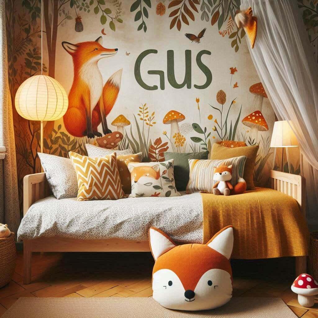 Un thème déco pour une chambre d'enfant portant le prénom Gus pourrait s'inspirer de son esprit aventureux et charmant. Optez pour des couleurs douces et naturelles comme le vert d’eau, le bleu pâle et des touches de marron pour créer une ambiance apaisante. Des éléments décoratifs comme un lit cabane, un tapis moelleux, des coussins en forme de lune et étoiles et une guirlande lumineuse apporteront une touche ludique et chaleureuse à la chambre de Gus.