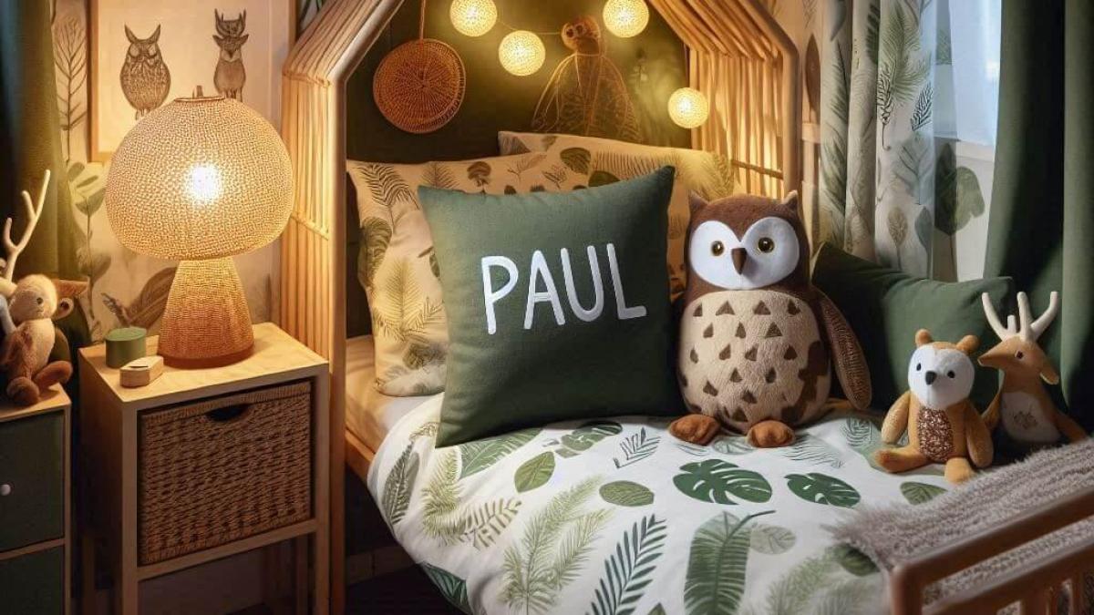 Découvrez l'origine, la signification et le caractère du prénom Paul. Trouvez aussi des idées déco pour une chambre d'enfant sur le thème voiture ou forêt, ainsi que des éléments personnalisés pour Paul.