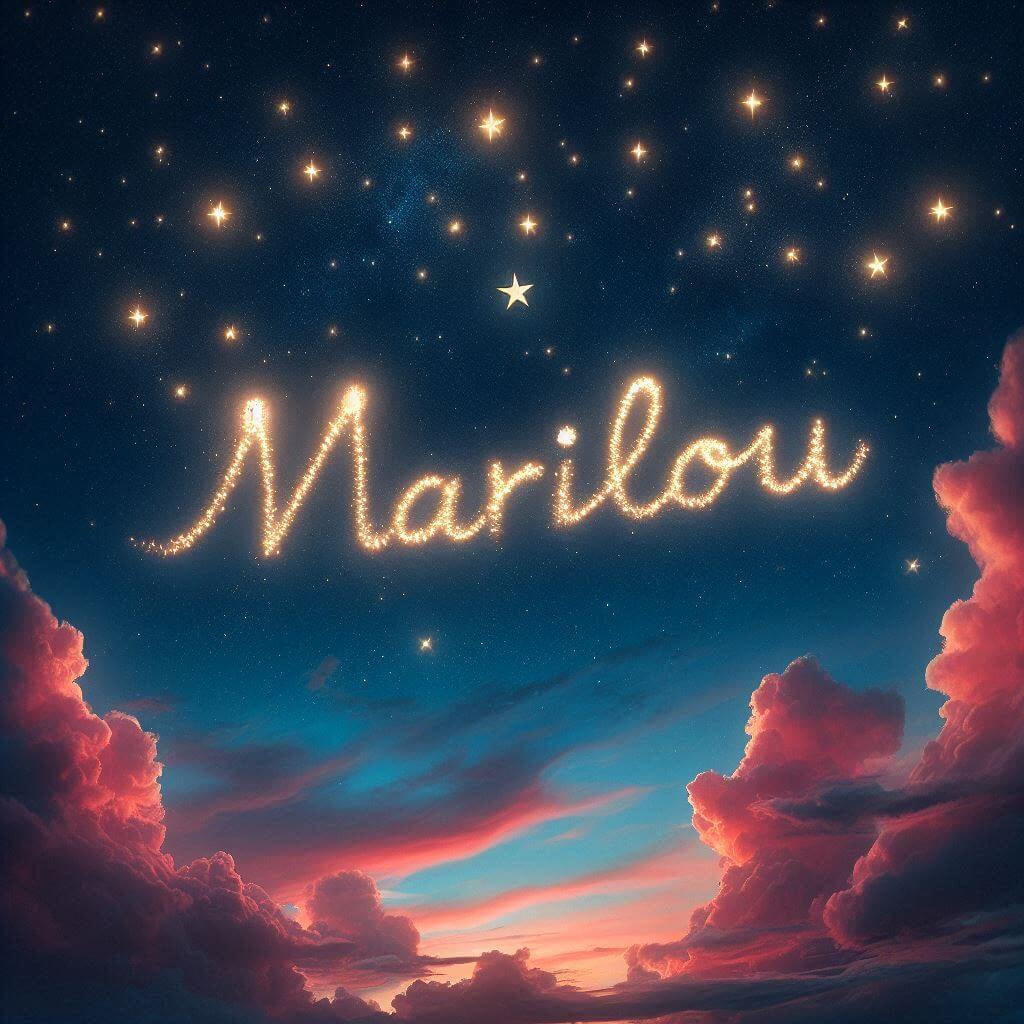 Marilou est un prénom composé, qui combine généralement les prénoms Marie et Lou, des prénoms d'origine latine et germanique. "Marie" vient de l'hébreu "Miryam" signifiant "mer de tristesse" ou "étoile de la mer", tandis que "Lou" est souvent une forme diminutive de Louise, signifiant "illustre combat." Marilou symbolise donc une combinaison de douceur et de force.