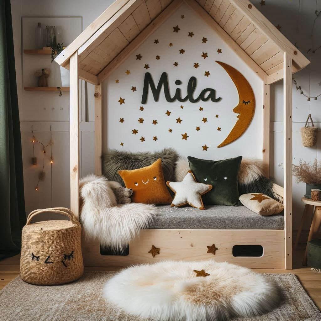 Découvrez des inspirations déco pour la chambre de Mila, avec des idées créatives et douces allant du style scandinave au bohème chic, incluant des lits cabane, des coussins étoilés, et des éléments naturels qui apportent une touche magique et personnalisée à l'univers de votre petite fille.