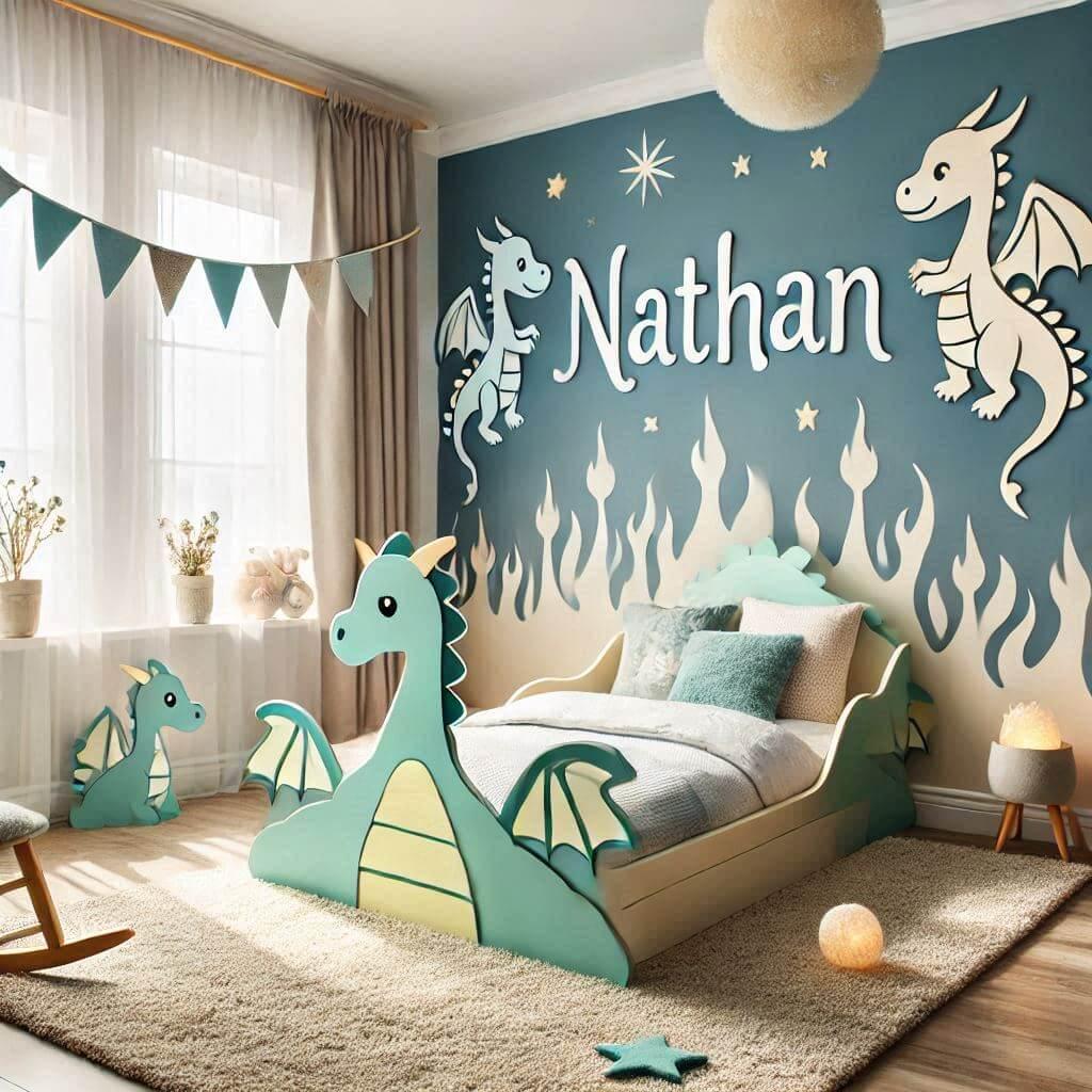 Offrez à Nathan une chambre inspirée par l'océan avec un lit bateau, des coussins étoiles de mer, et une peluche poulpe pour un voyage sous les mers.