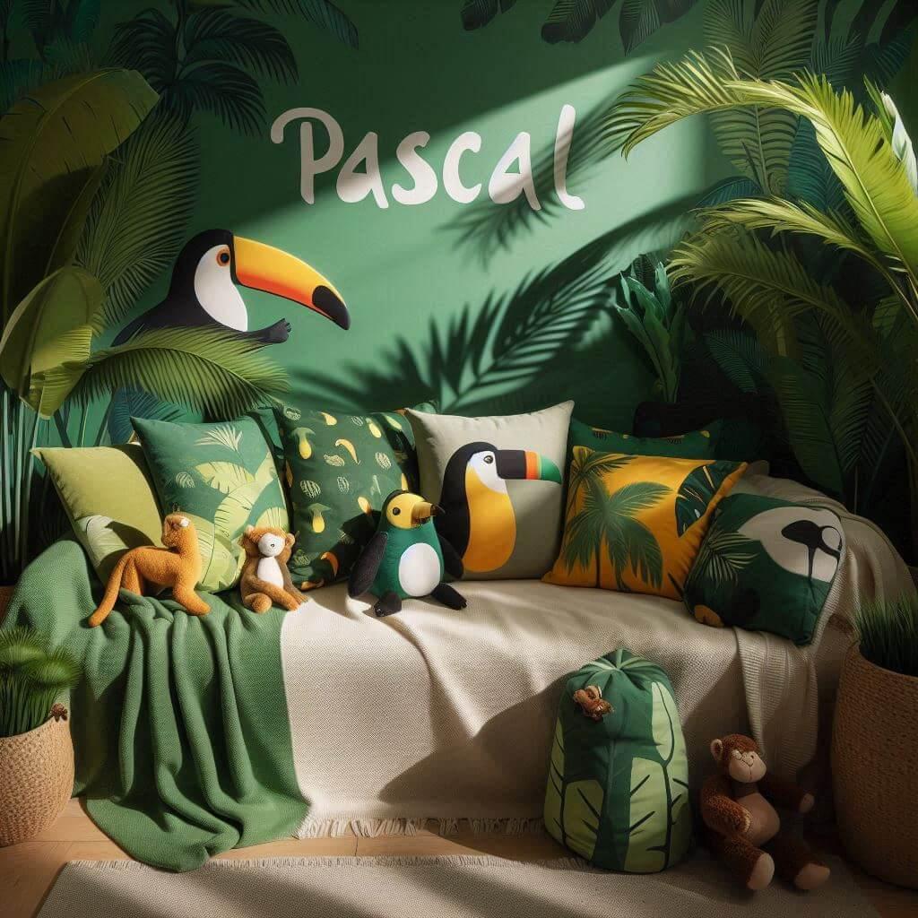 Découvrez nos idées de décoration personnalisées pour la chambre de Pascal : ambiance forêt, style scandinave, jungle tropicale et touches ludiques avec son prénom brodé sur les coussins et accessoires.