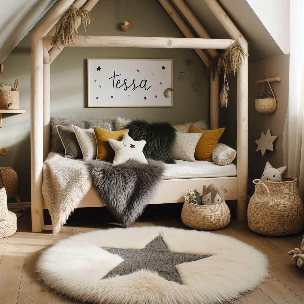 Explorez des idées déco inspirantes pour la chambre de Tessa, avec des ambiances variées allant d'un univers scandinave étoilé à une jungle tropicale colorée, en passant par un monde féerique de licornes et de forêts enchantées.
