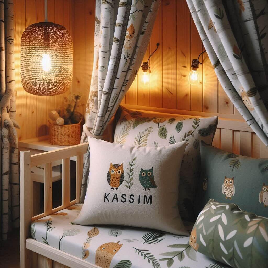 Un thème déco pour une chambre d'enfant portant le prénom Kassim pourrait s'inspirer de la richesse des couleurs terreuses et des influences orientales. Pensez à des tons chauds comme le brun, le beige, l'ocre et le cuivre, accentués par des matériaux naturels comme le bois foncé et des touches de tissus luxueux comme le velours ou la laine. Des accessoires en forme de motifs géométriques, de lanternes et de tapis orientaux, ainsi que des éléments décoratifs inspirés de la culture et de l'artisanat traditionnel, apporteraient une ambiance à la fois accueillante et chaleureuse.